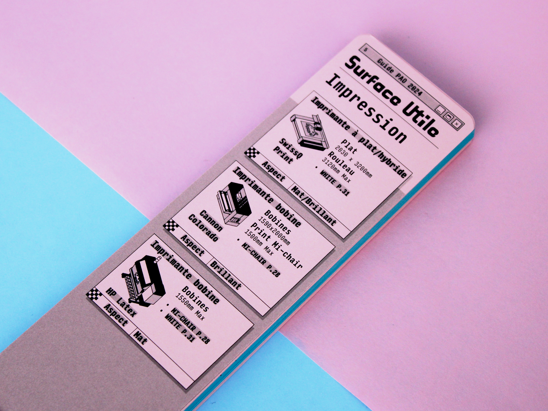 FR - L'idée principale est de créer un guide plus maniable et pratique. Toutes les imprimeries ont déjà une solution numérique avec des PDFs ou des livrets plus classiques. En permettant au client de déplier et de rechercher le sujet comme un nuancier Pantone, nous stimulons sa curiosité et l'incitons à consulter les techniques jusqu'à ce qu'il les maîtrise complètement.